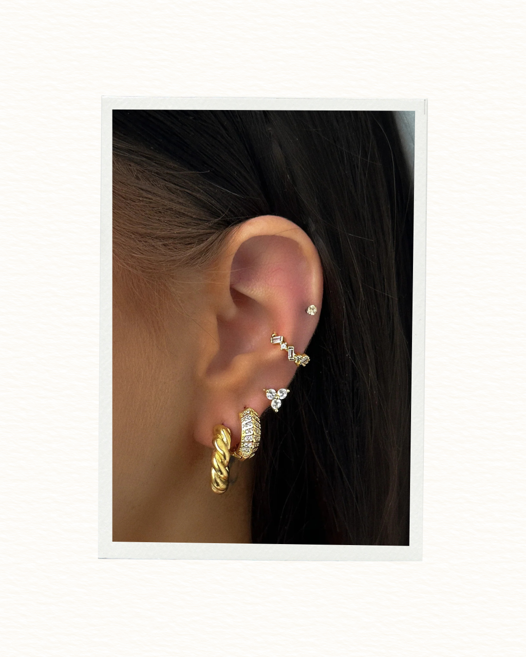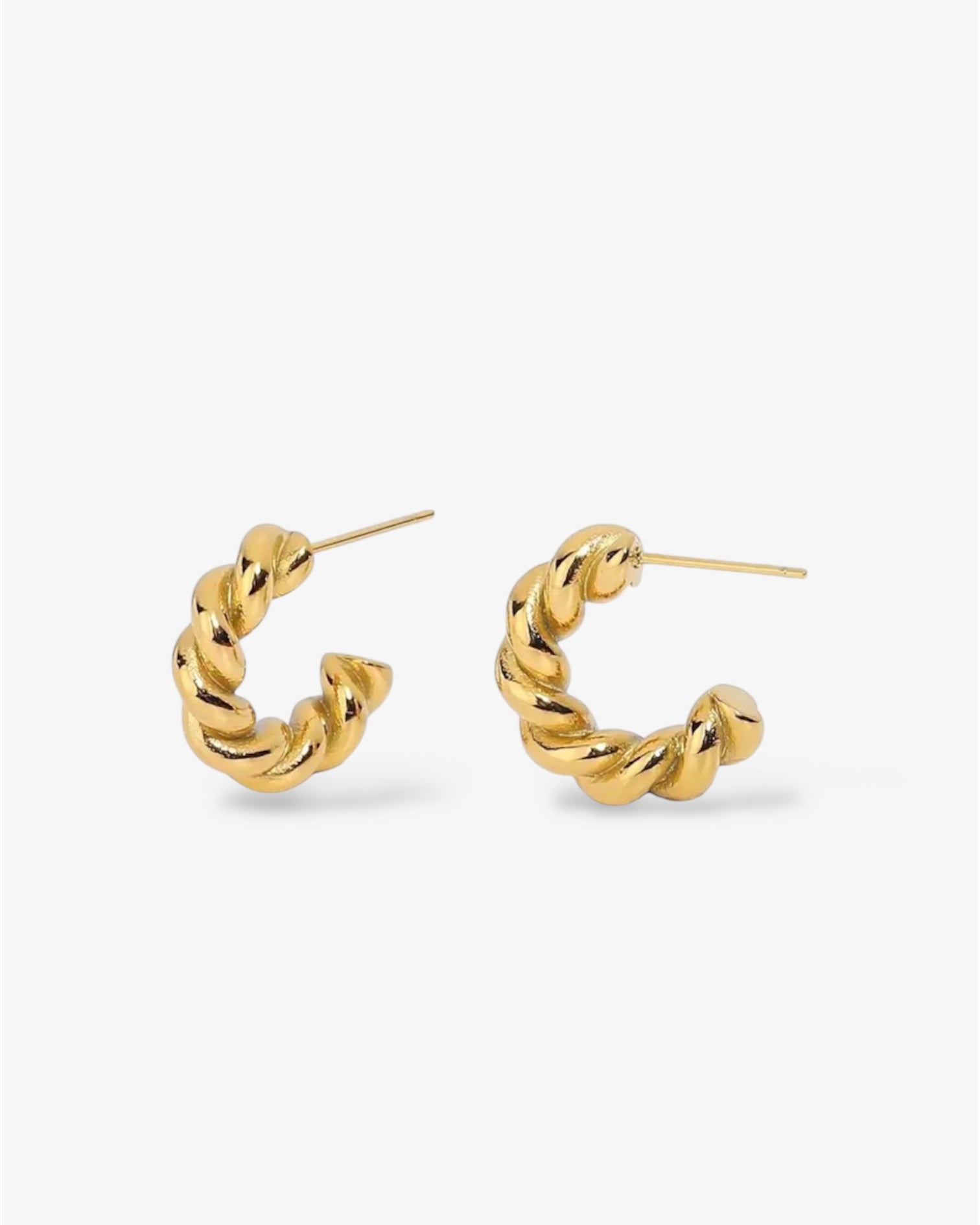 Delicate in size yet rich in texture, these twisted gold mini hoops bring a subtle sculptural charm to your everyday rotation. Their polished, rope-inspired silhouette adds just the right touch of dimension—refined, versatile, and effortlessly timeless.