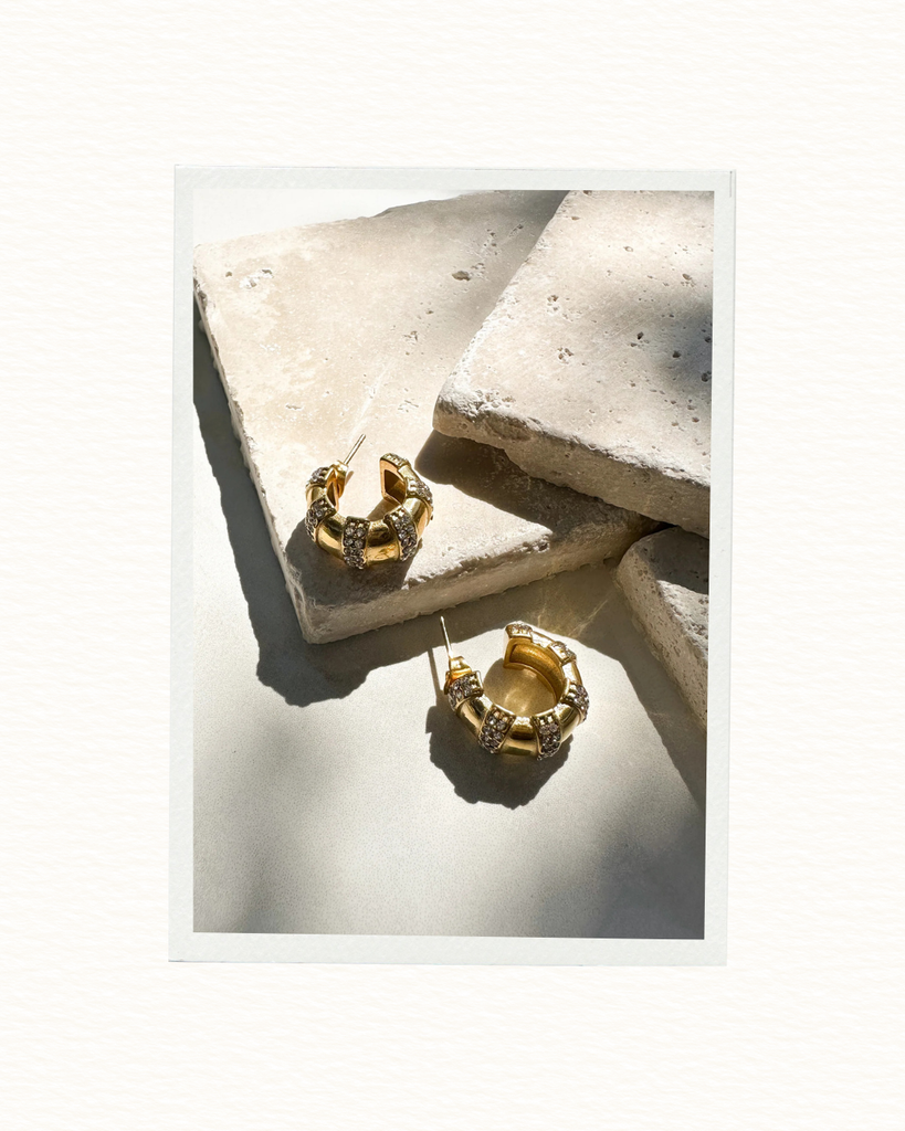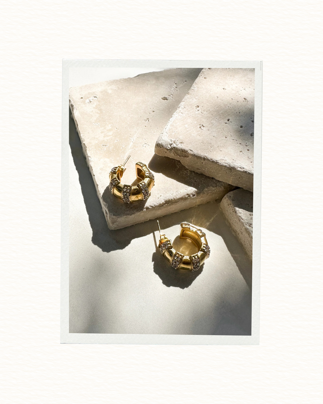 Small in size but big on shine, the Devery hoops deliver a dose of subtle glamour with their rounded silhouette and pavé detailing. Effortlessly chic and endlessly versatile, they add just the right amount of sparkle to your everyday look—refined, radiant, and impossible not to notice.
