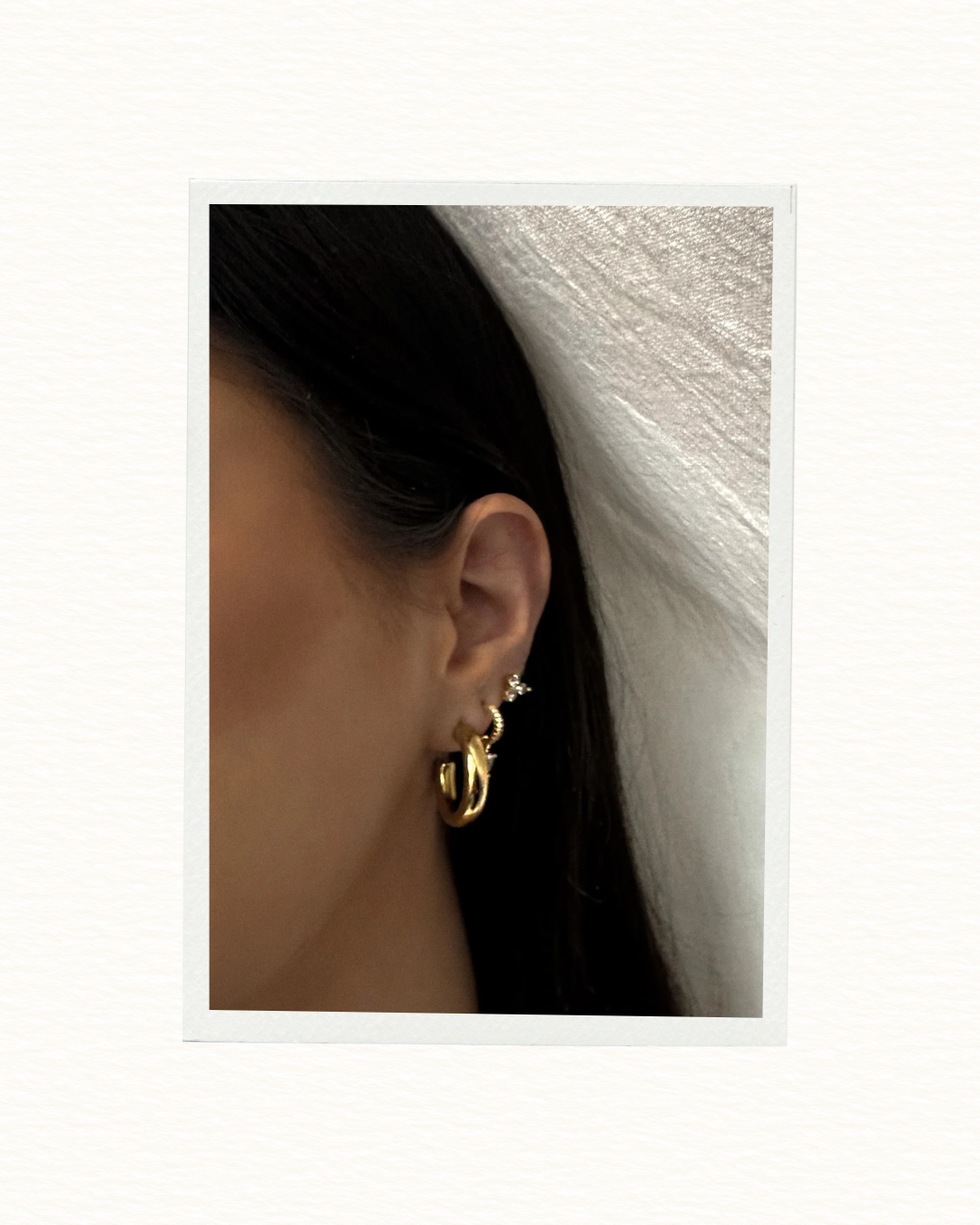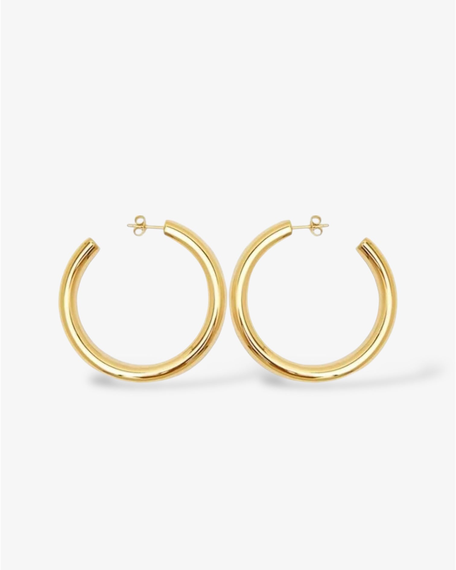 Sleek and endlessly versatile, these polished gold hoops redefine the modern classic. Minimal, weightless, and quietly striking, they’re the kind of piece you’ll reach for without thinking.