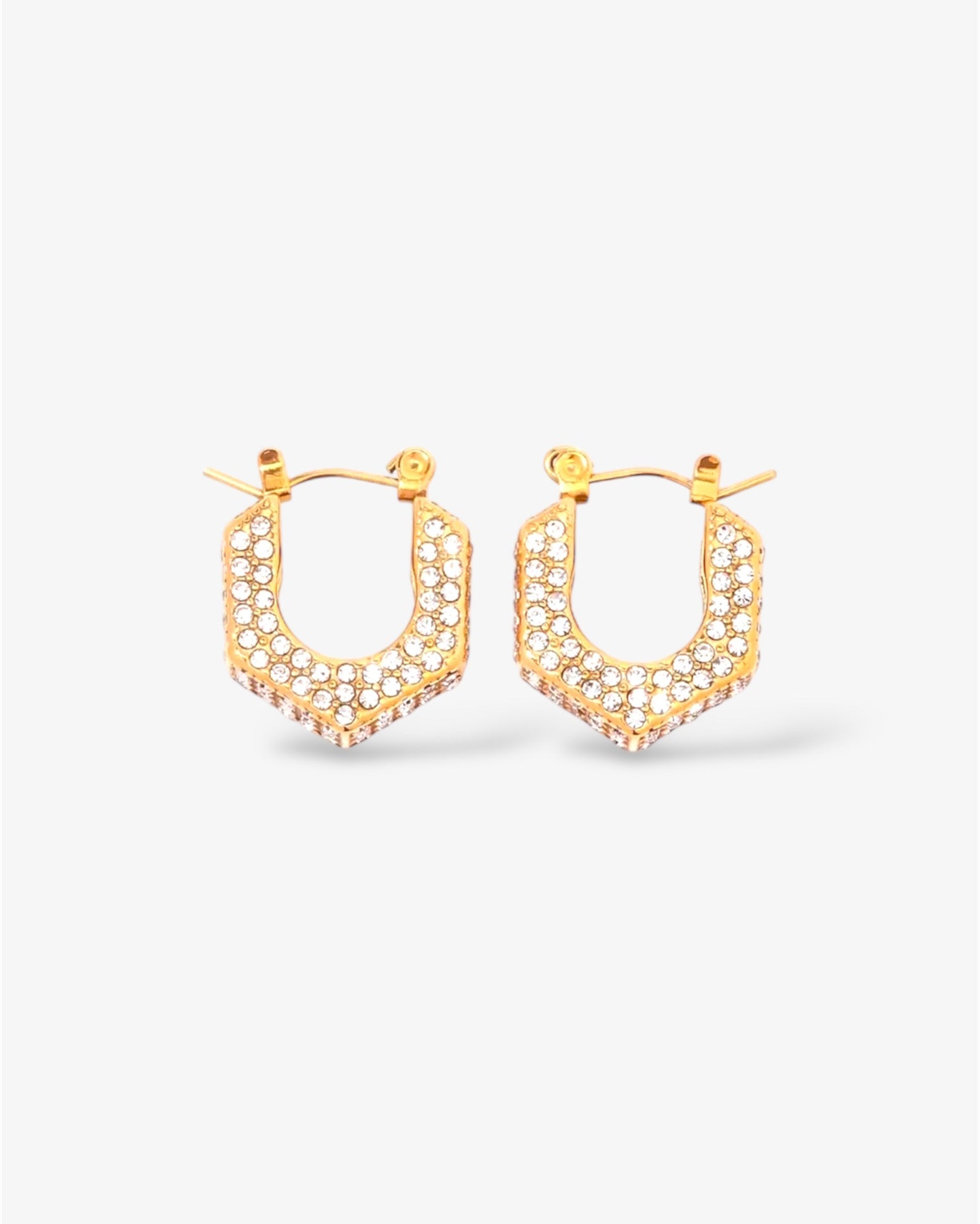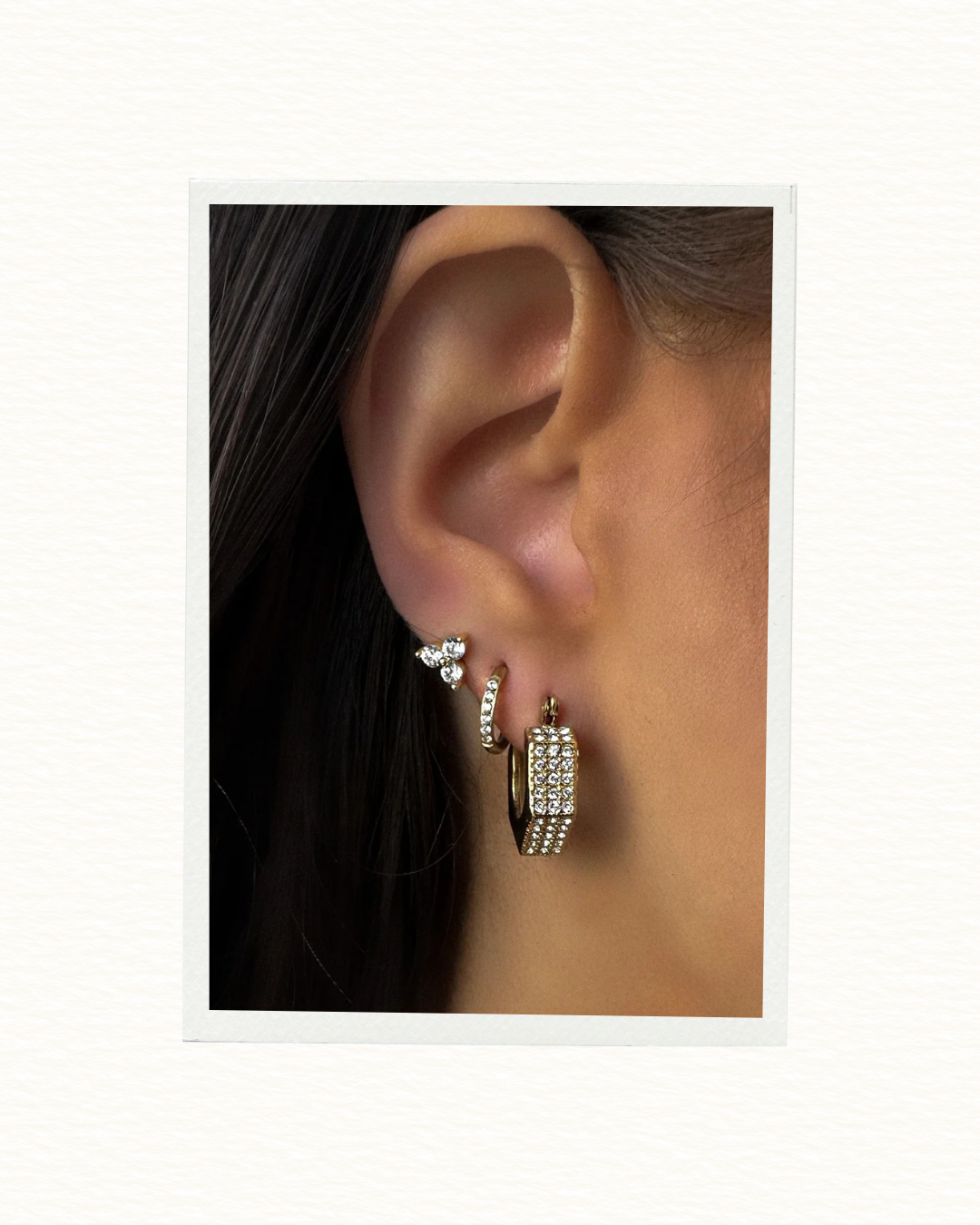 Dazzling yet impeccably polished, these pavé hoops bring a bold dose of sparkle to your everyday lineup. Their angular silhouette offers a modern twist on a classic shape, while dozens of brilliant crystals catch the light from every angle. Statement-making without feeling over the top, they’re the perfect balance of glamour and sophistication; your go-to when you want instant shine.