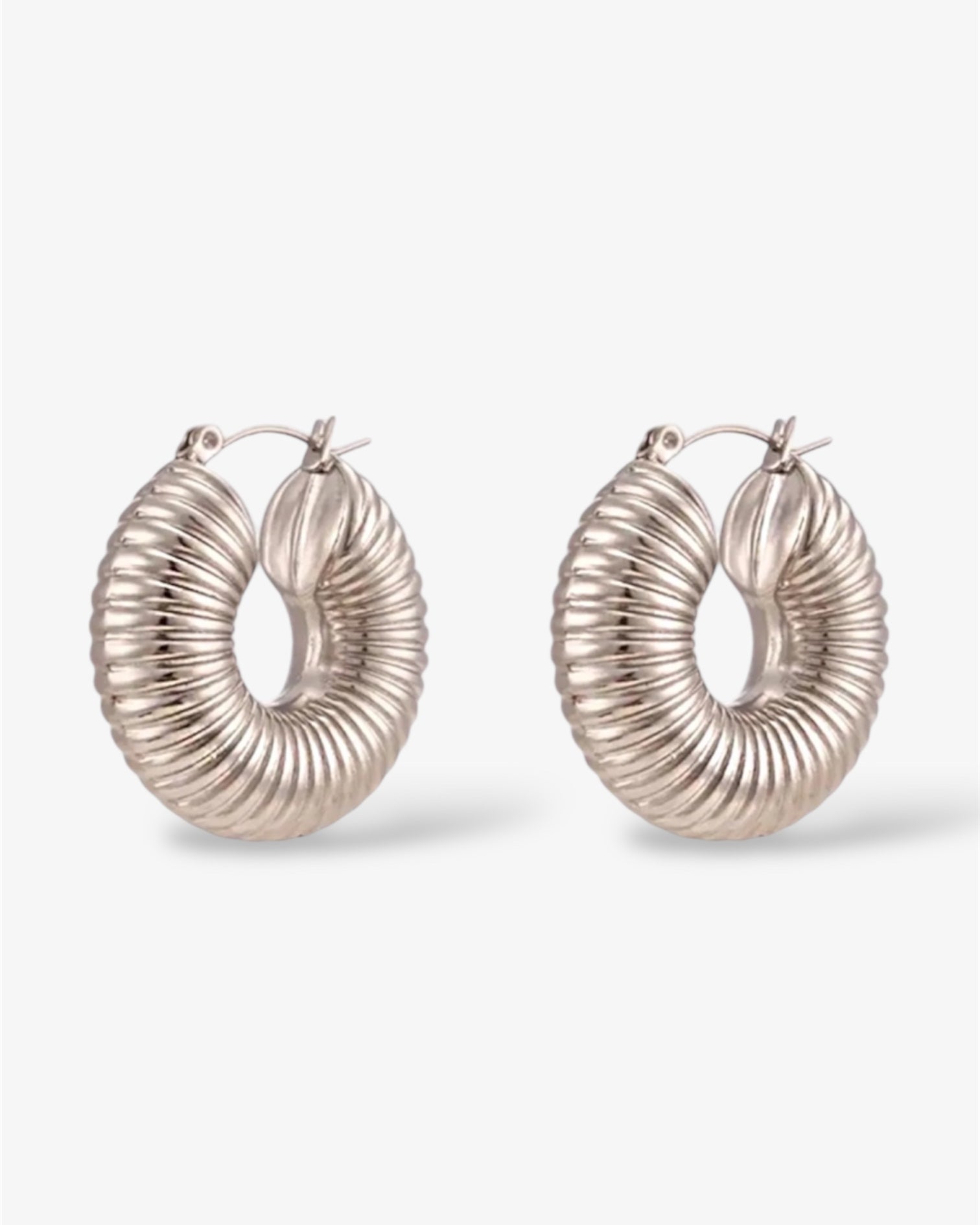Bold yet refined, our ribbed Dylan hoops deliver instant impact with their sculptural texture and modern silhouette. Lightweight and effortless, they bring a confident, statement-making edge to any look—striking without ever feeling heavy.