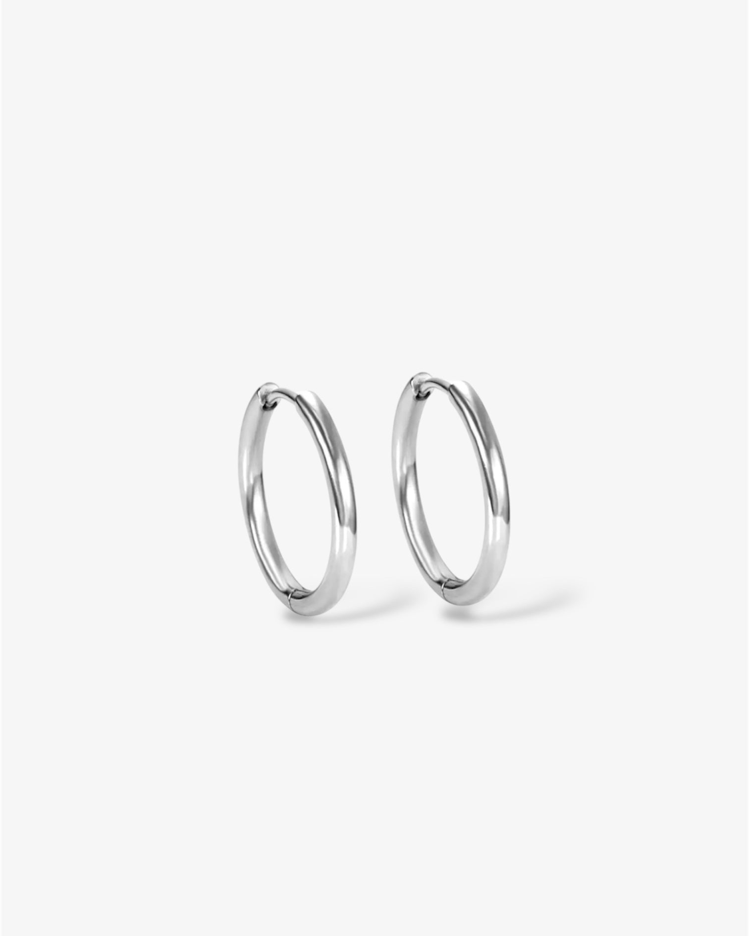 Refined, effortless, and endlessly wearable, Gretchen is an essential silver hoop for any modern wardrobe. Its clean, polished silhouette brings understated sophistication to any look—perfect for everyday wear.